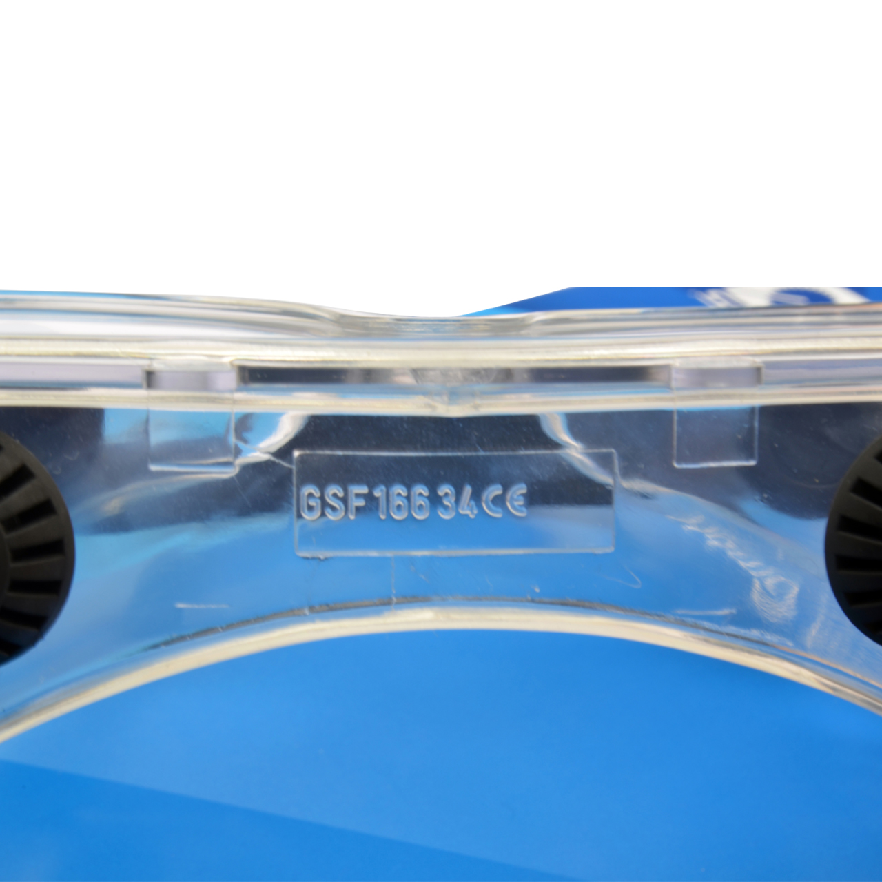 Vollsichtbrille mit Gehäuse aus klarem Weich-PVC.