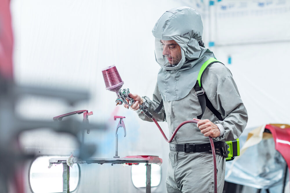 Die Atemschutzhaube OPTREL SOFTHOOD wird in Kombination mit dem akkubetriebenen Belüftungssystem e3000X oder dem druckluftbetriebenen SUPPLIED AIR System betrieben.