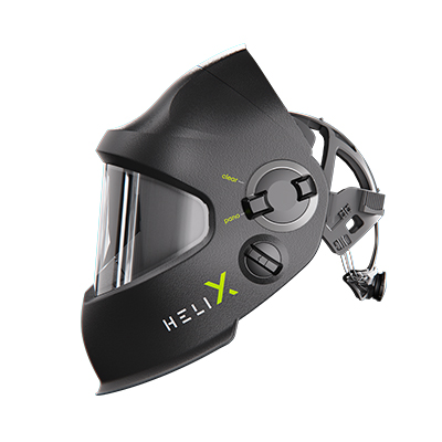 Mit dem seitlich intergrierten Drehknopf wird die automatische Abdunklungskassette innen über den Kopf des Schweißers geschwenkt und ermöglicht dem Arbeiter eine freie Sicht durch die klare Vorsatzscheibe.