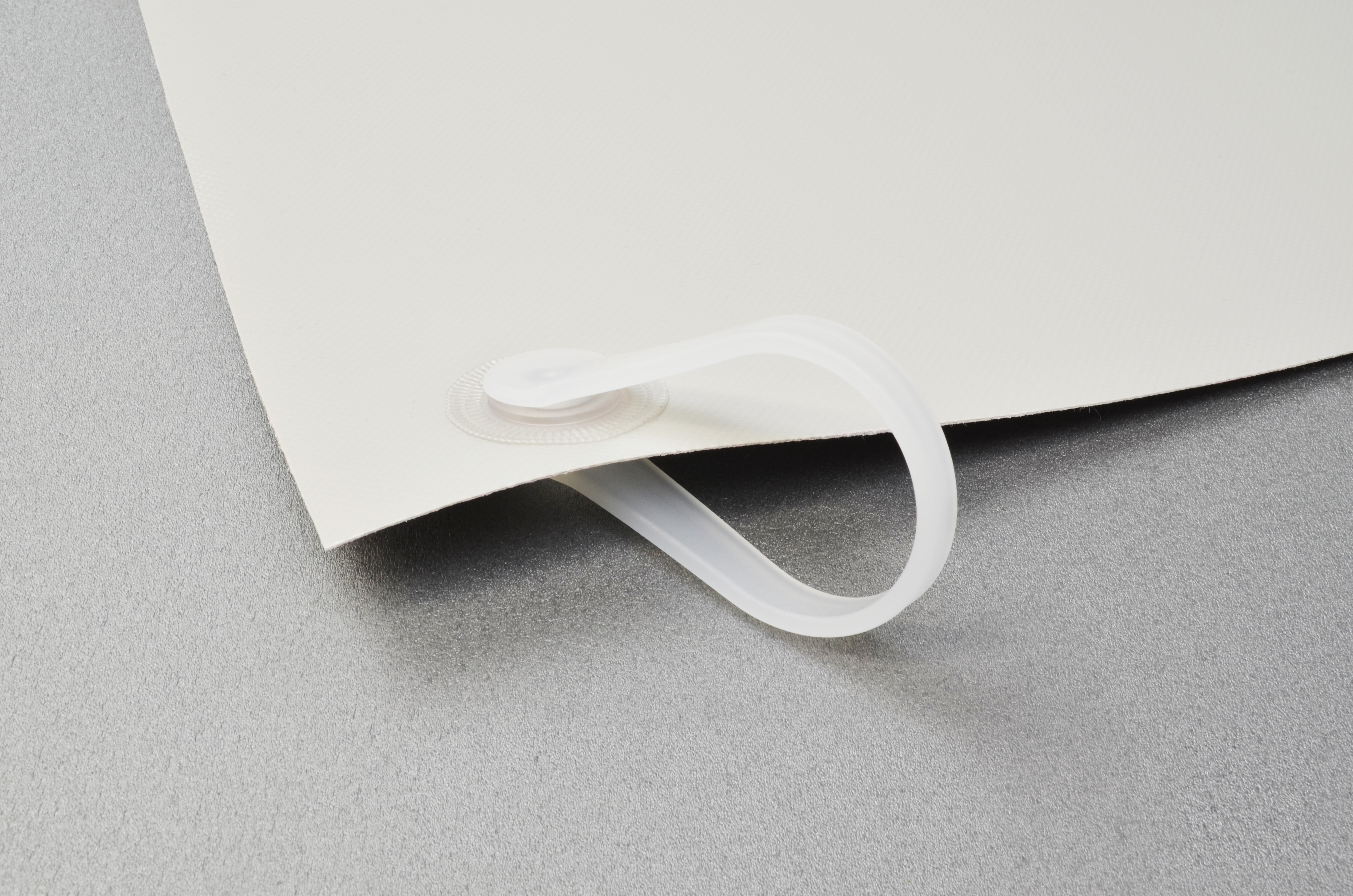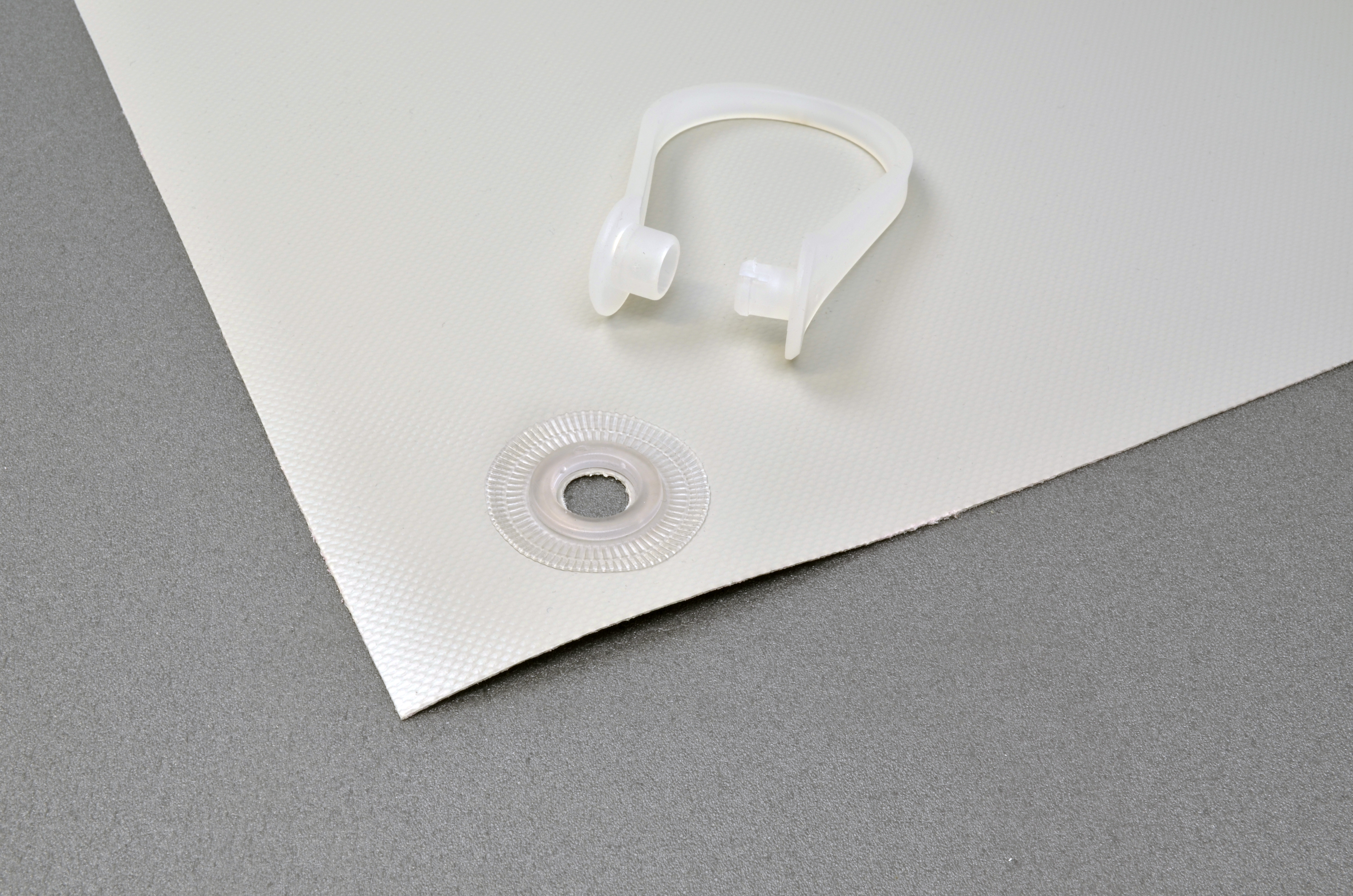 Schutzvorhang aus PVC-Strukturgewebe, B1, lichtgrau, mit Kunststoffringen