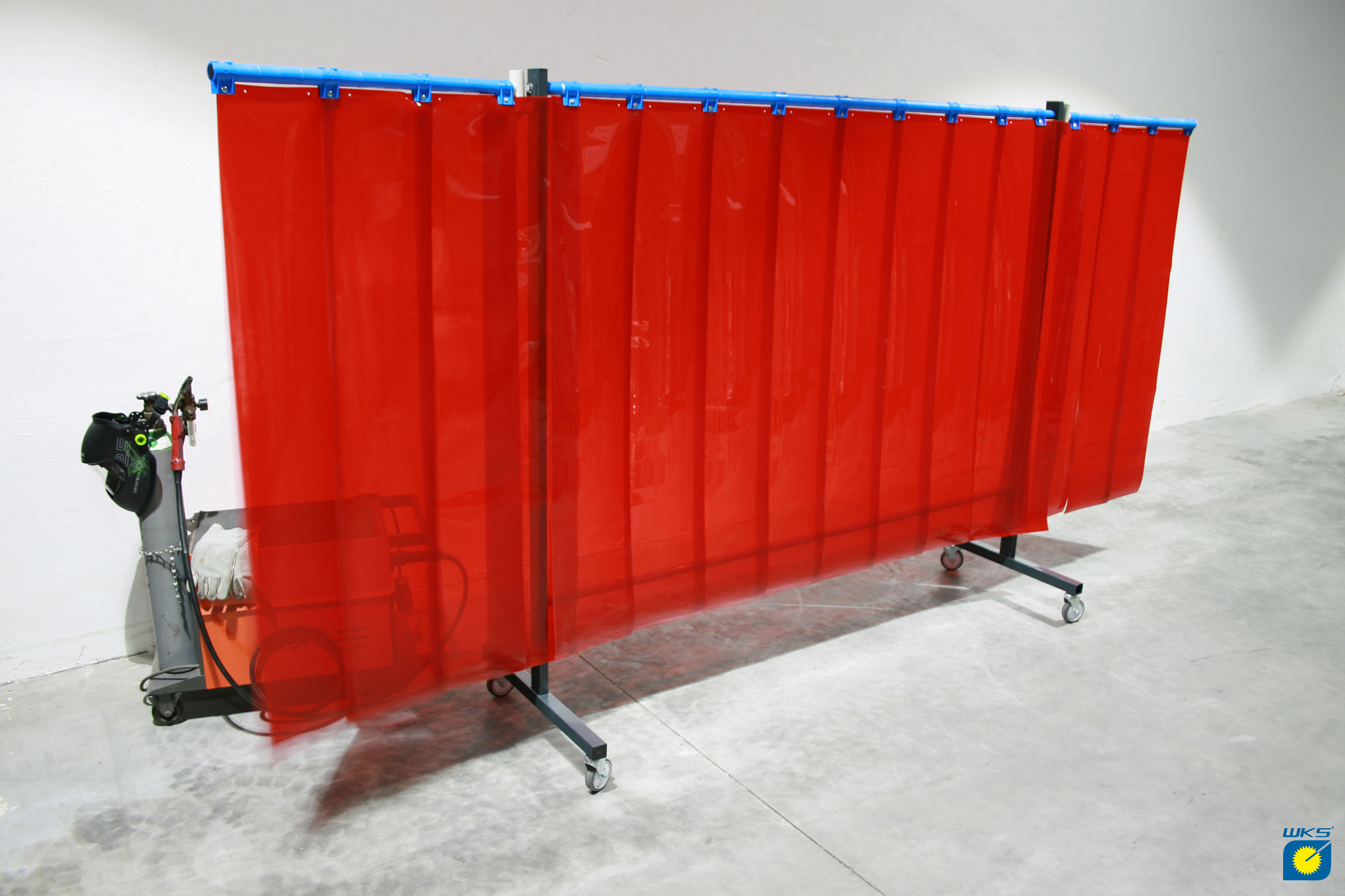 Produktinformationen "SST6 Schutzwand mit Schwenkarm, 2 x 3,9 m, Lamellen 300 x 2 x 1600 mm, rot R4"