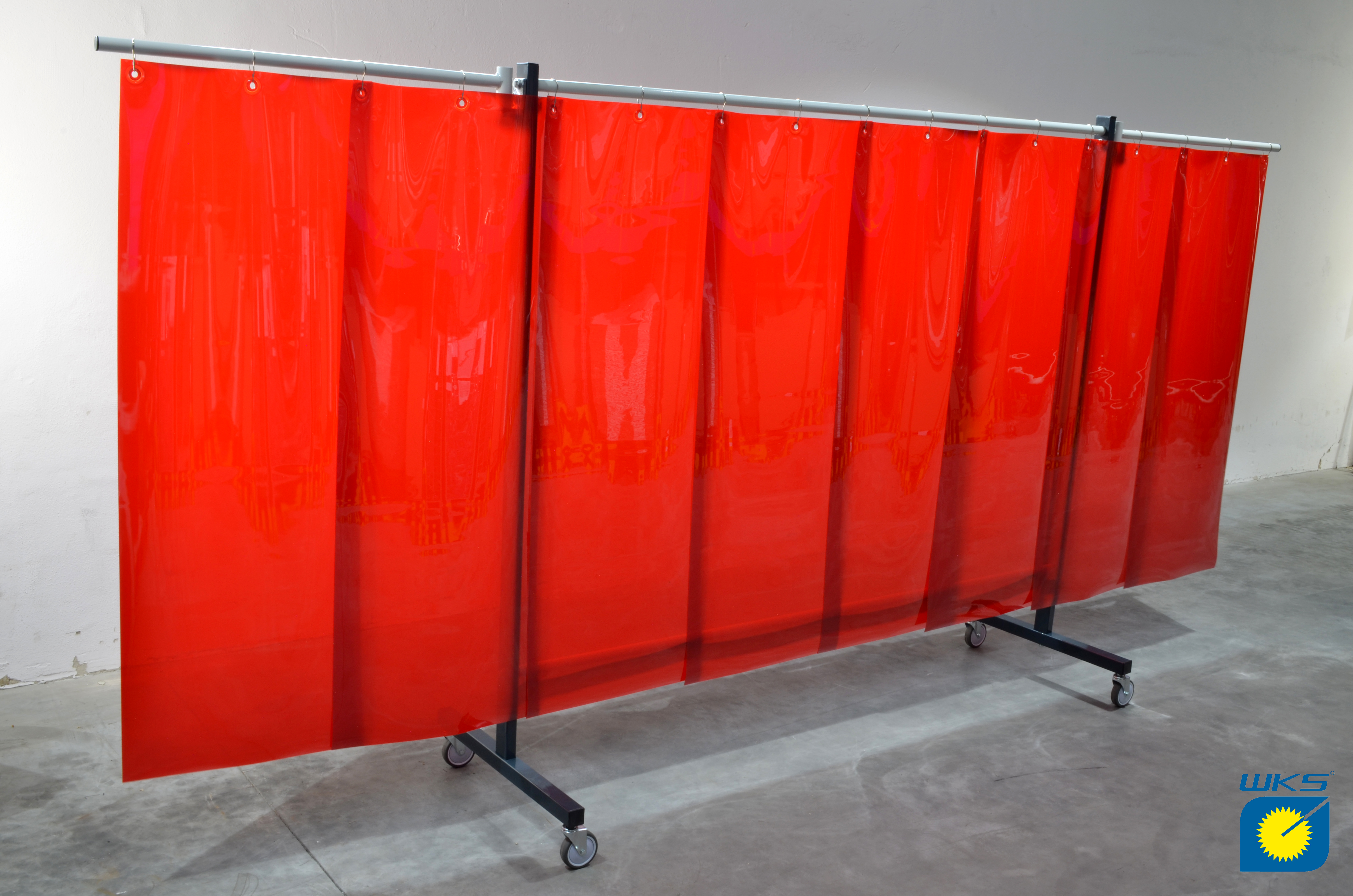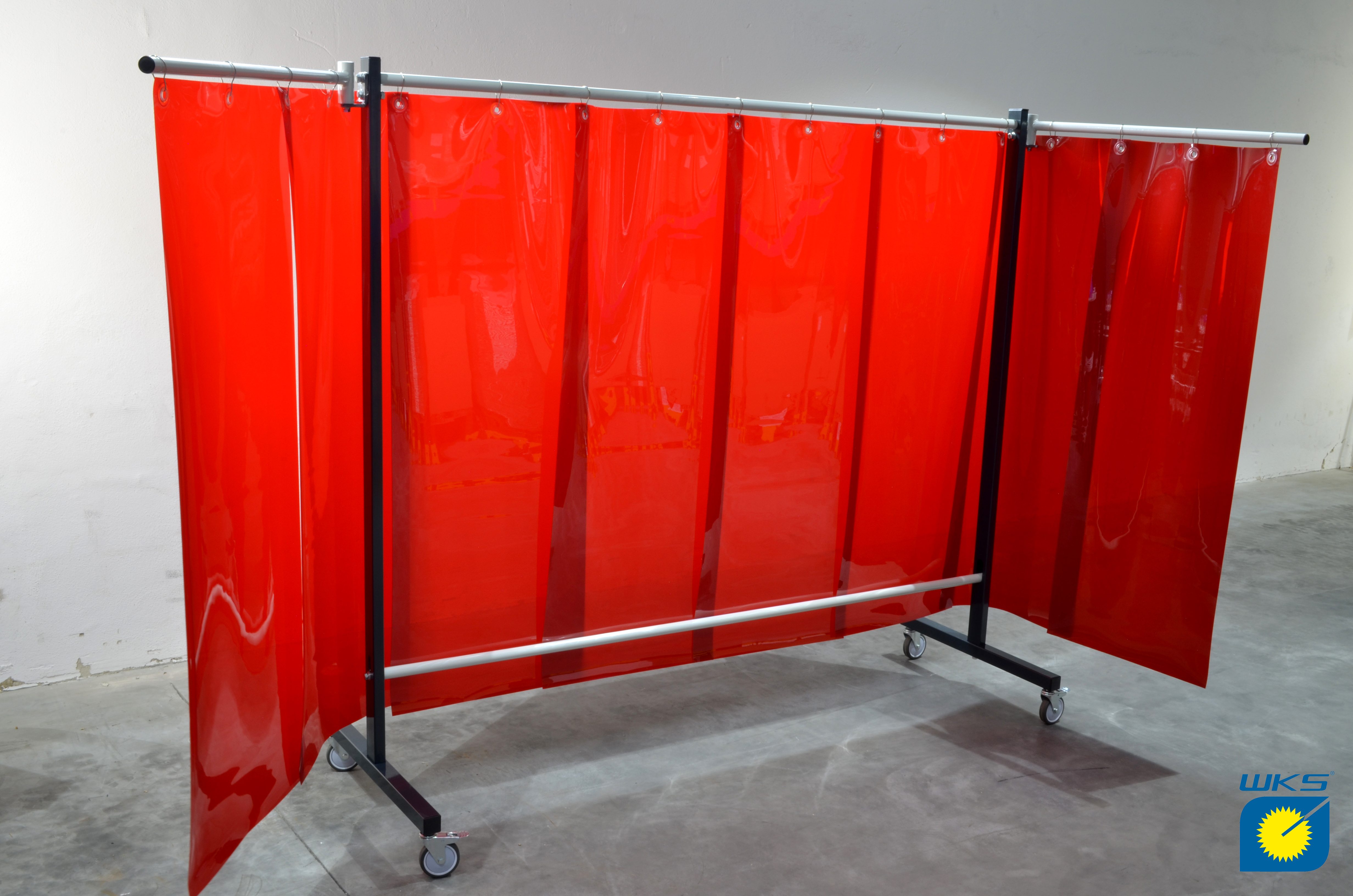 SST8 Schutzwand mit Schwenkarm 2,0 x 3,9 m, Lamellen 570 x 1 x 1600 mm, rot R4