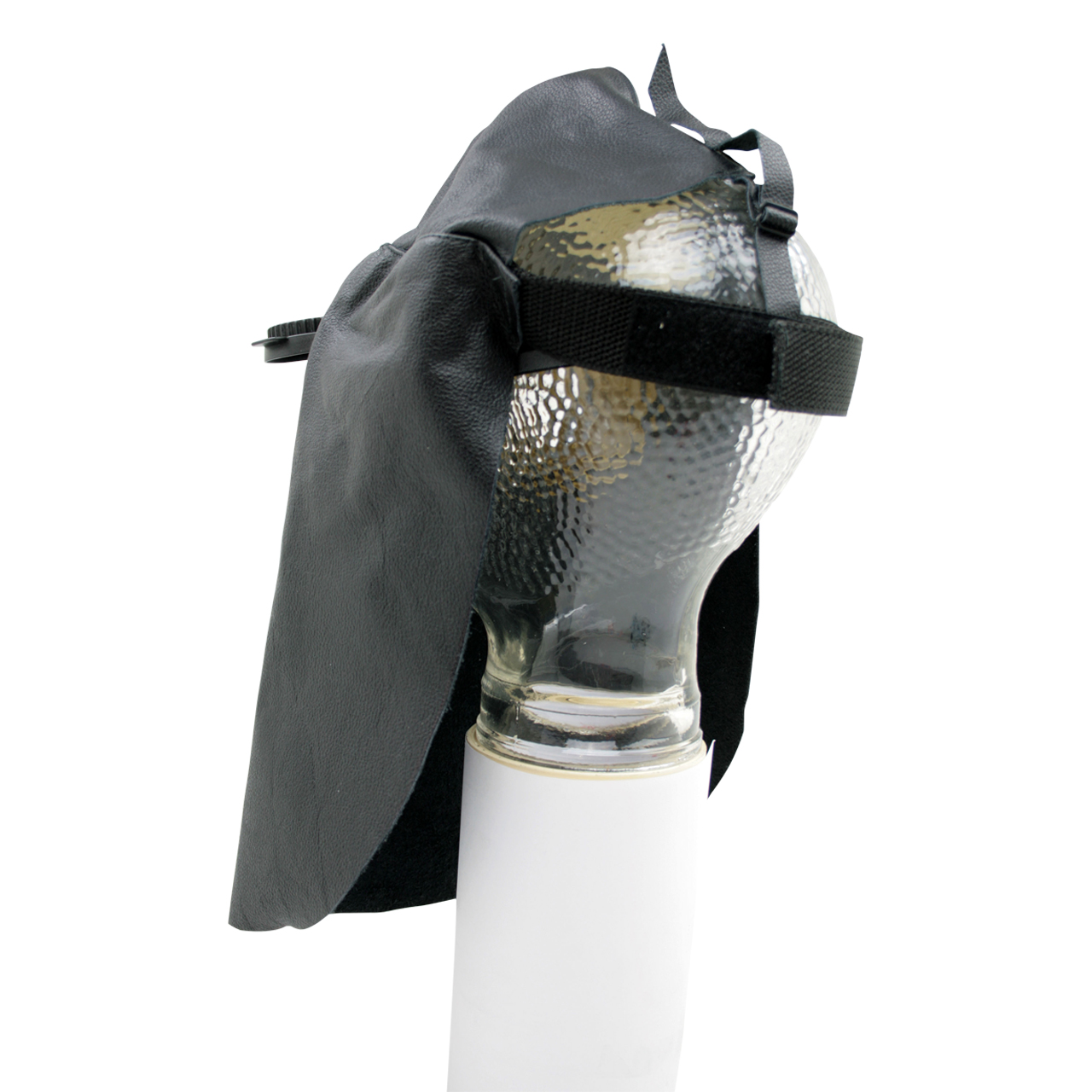 - Schweißer-Kopfschutzhaube aus schwarzem Vollleder
