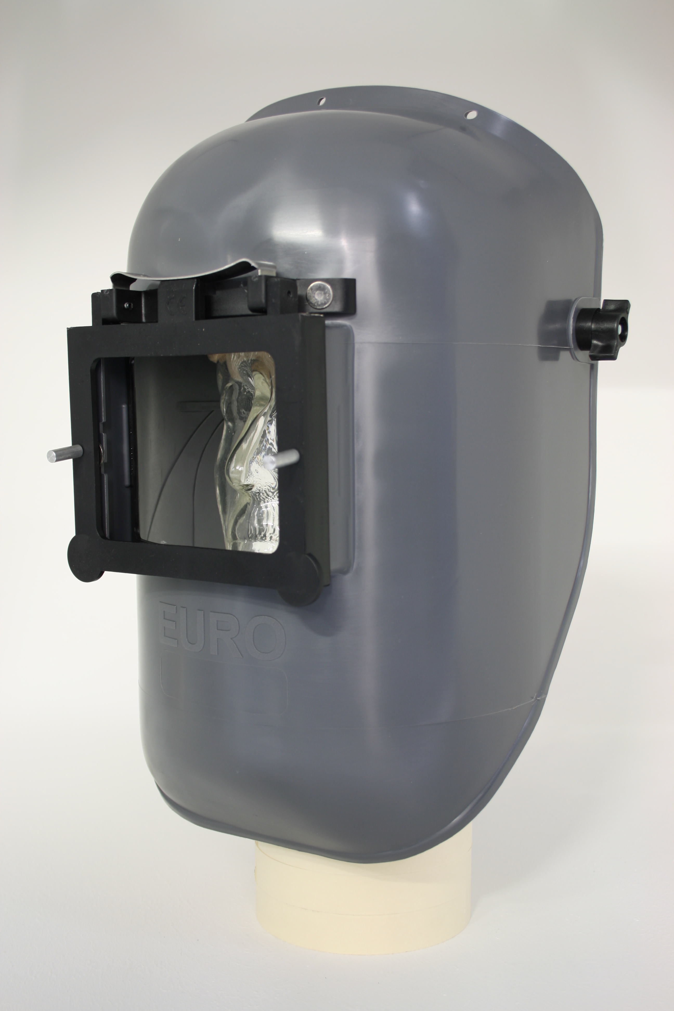 - Kopfschutzschirm aus grauem PA/GF (glasfaserverstärktes Polyamid) mit Klapprahmen