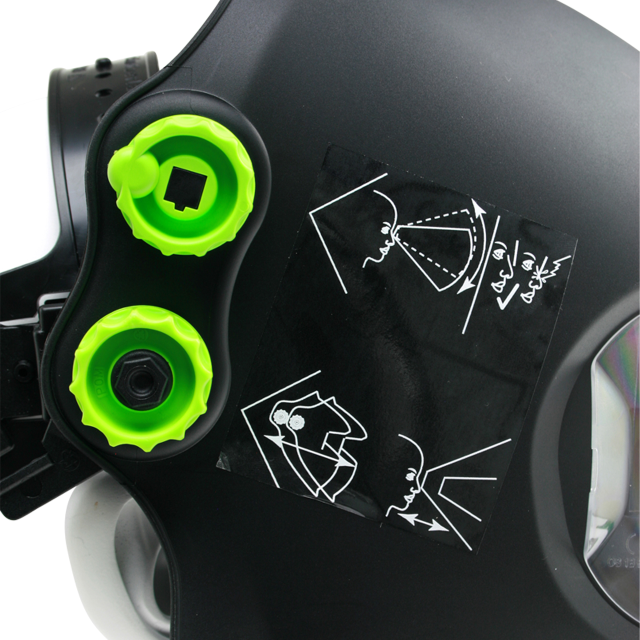 | Sichtfeld | Je nach Kopfbandeinstellung 2,3 bis 6,3 faches Sichtfeld einer 100 x 50 mm Industriestandard-Blendschutzkassette |