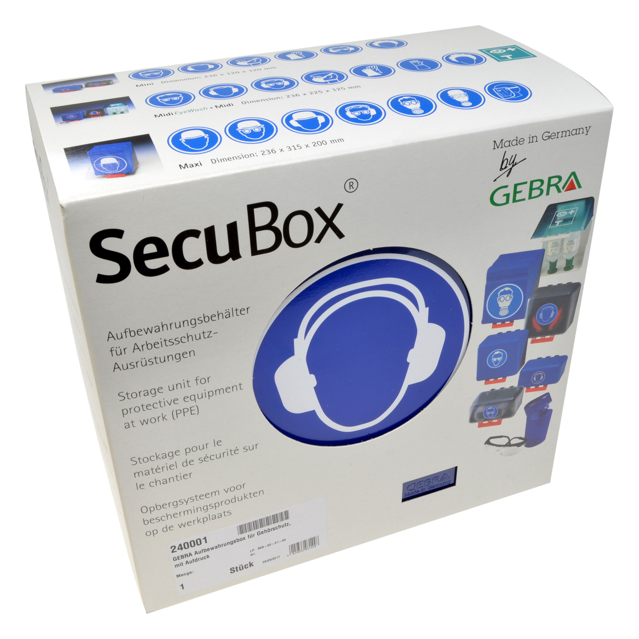 Aufbewahrungsbox SecuBox® Midi bl für Gehörschutz, blau/schwarz mit Aufdruck