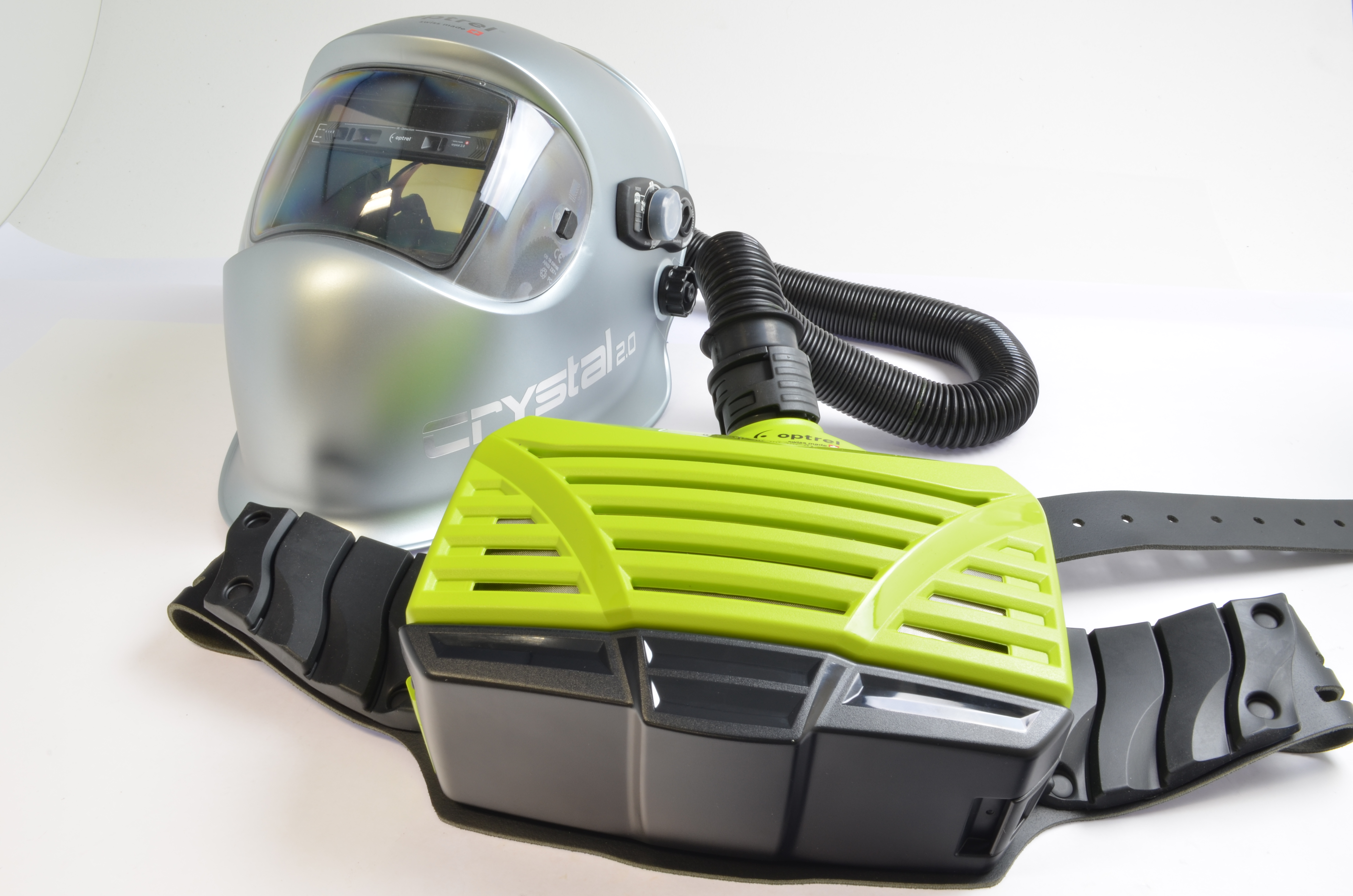optrel® crystal 2.0, silber metallic, DIN 2/4-12, Frischlufthelm mit e3000X