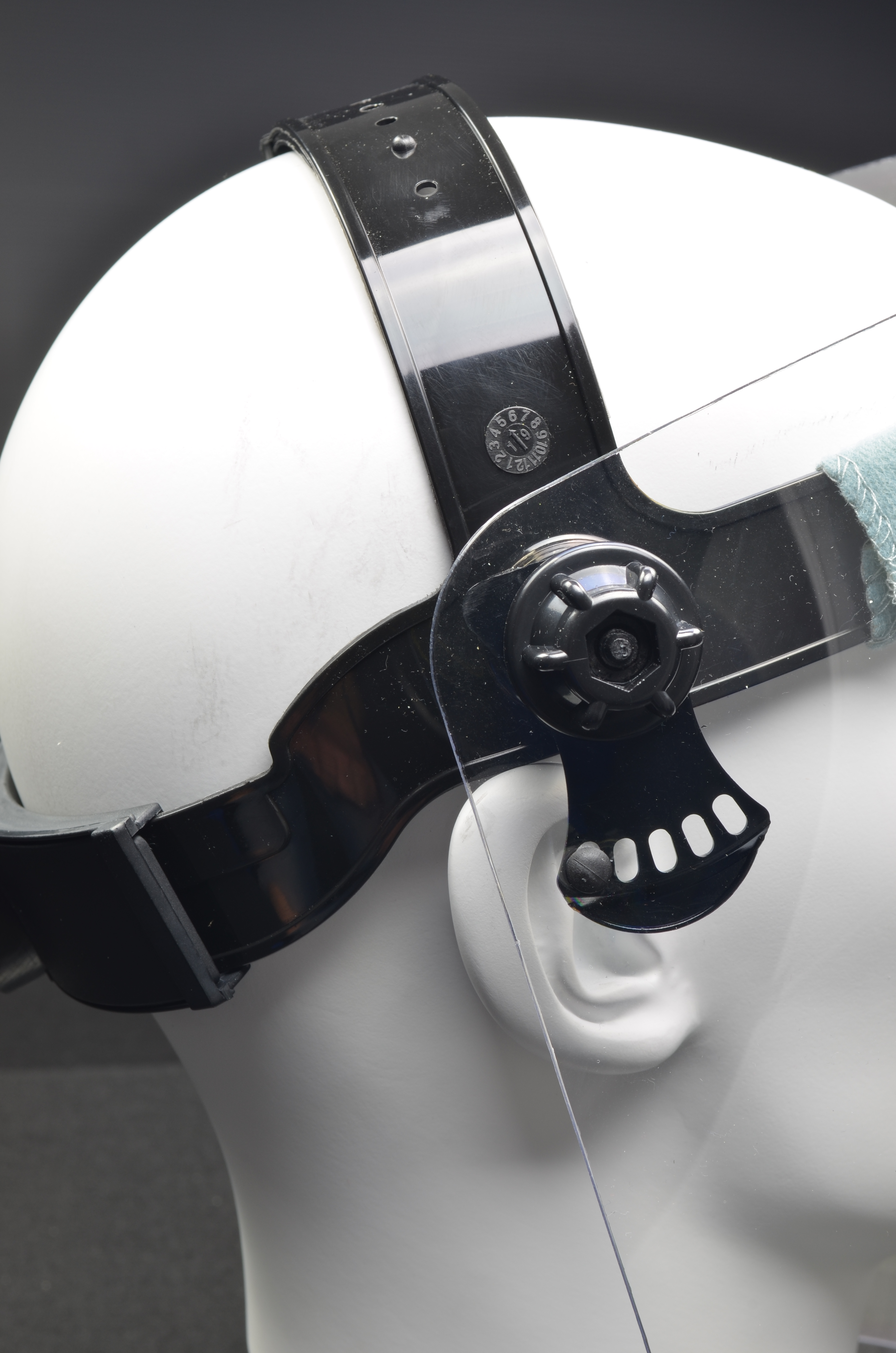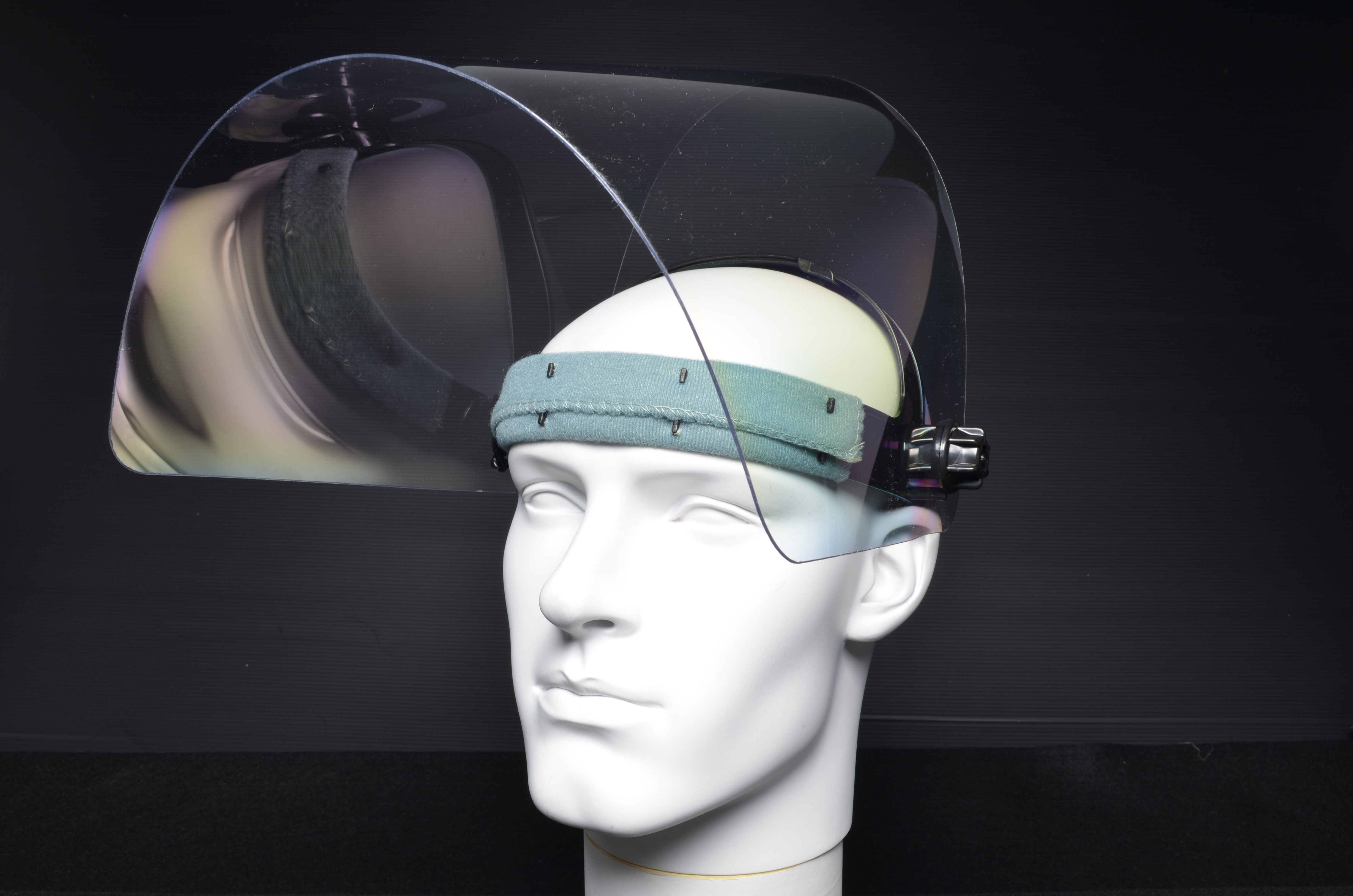 Gesichtsschutz, klar, Kopfhalterung, klappbare PET-G Scheibe 460x280x1