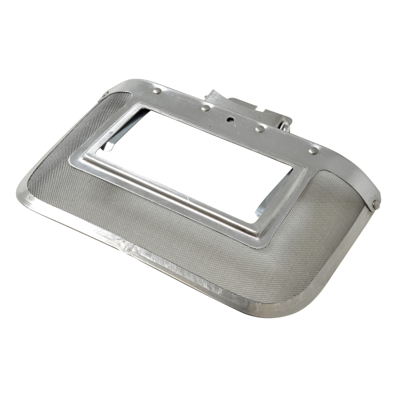 - aus verzinktem Stahldrahtgewebe, innen schwarz matt lackiert, umlaufend mit Aluminiumrahmen eingefasst