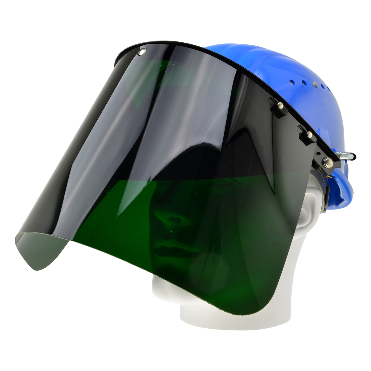 Anbauvisier mit Federzug für Arbeitshelme, PET-G Scheibe, DIN 5, ohne Helm