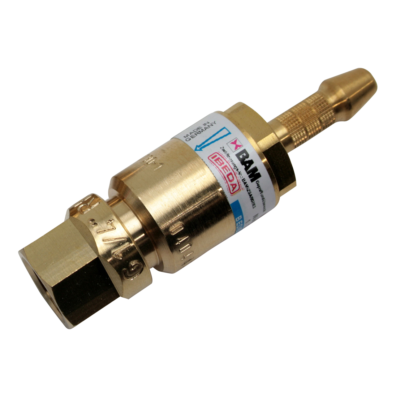 Sicherheitseinrichtung brennerseitig, Sauerstoff, 1/4" RH, Tülle 6 mm