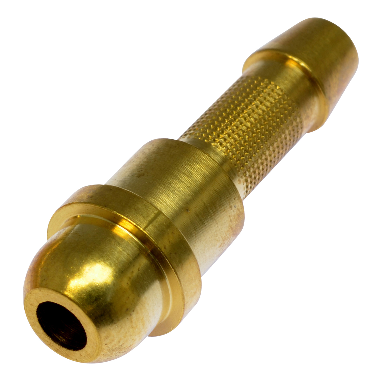 Schlauchtülle aus Messing für Schläuche mit einem Innendurchmesser von 5,0 mm gemäß DIN 8542 - EN 560. Die Tülle ist passend für eine Überwurfmutter mit 1/4" Innengewinde und ist 33,0 mm lang.
