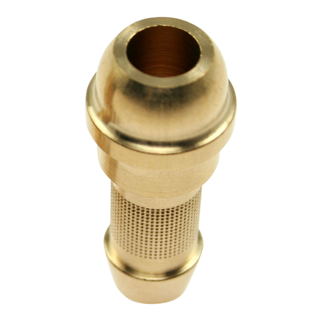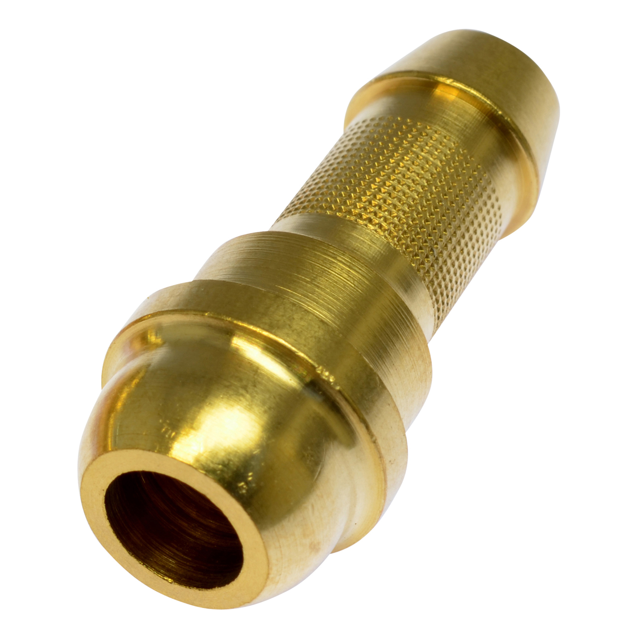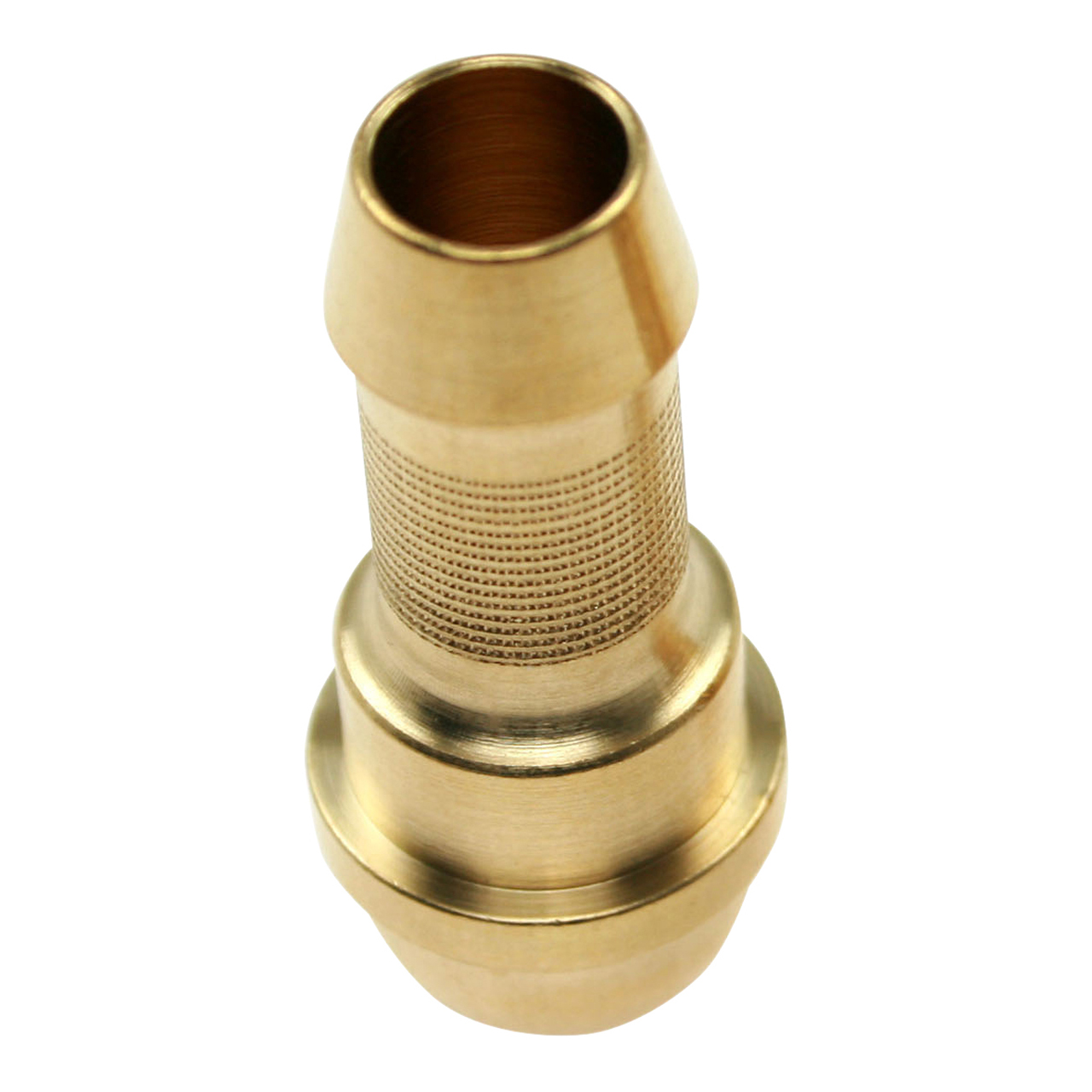 Schlauchtülle aus Messing für Schläuche mit einem Innendurchmesser von 9,0 mm gemäß DIN 8542 - EN 560. Die Tülle ist passend für eine Überwurfmutter mit 3/8" Innengewinde und ist 33,0 mm lang.