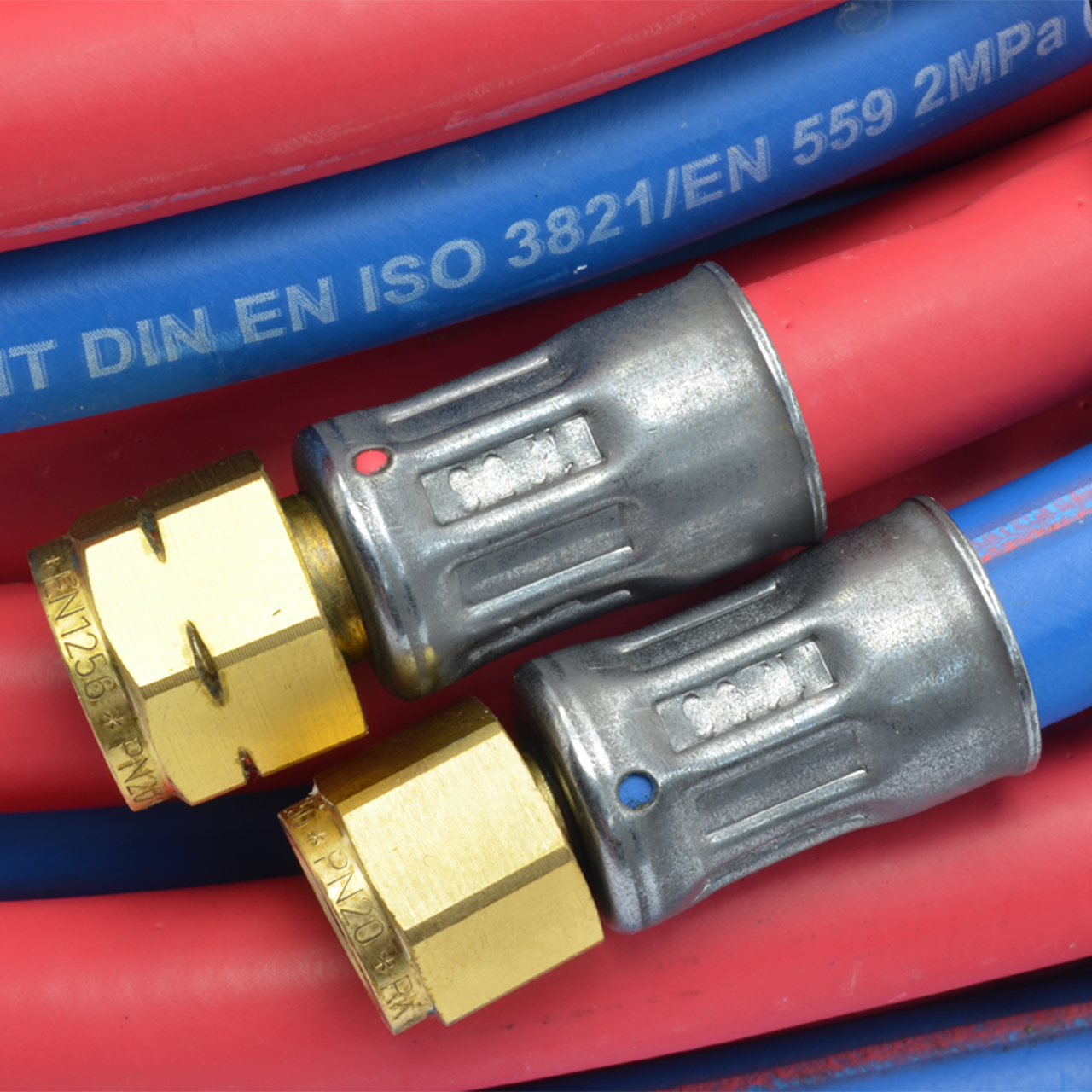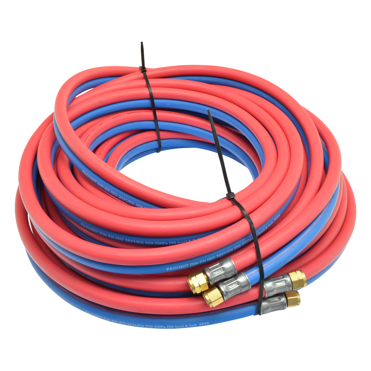Zwillingsschlauch, Azetylen/Sauerstoff, 9 x 3,5 mm/6,3 x 5 mm, fertig montiert