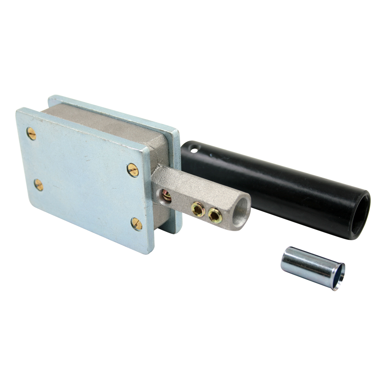 Magnetische Polklemme mit Aluminiumgehäuse und seitlichen Stahlplatten. Bis 600A belastbar bei 35% Einschaltdauer.